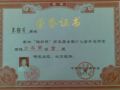 8月20--23日全國“雅韻杯”古箏大賽在南京舉行,昆山代表隊共有15名學(xué)員組成,參加5個(gè)級別的比賽,其中方新雨小朋友獲幼兒甲組金獎,邱舒怡小朋友獲兒童甲組金獎,朱靜蕓小朋友獲兒 童乙組金獎,再此向她們表示衷心的祝賀!